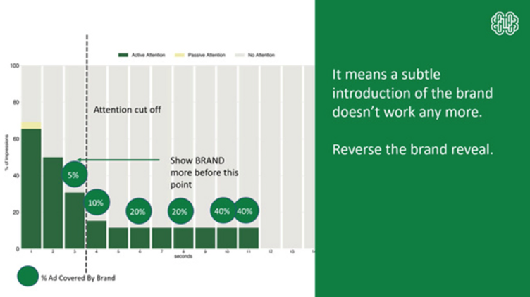Pochopitelně pozornost ovlivňuje kromě kontextu samotného i exekuce. Většina reklam v online prostředí si udrží pozornost po velmi krátkou dobu, a proto v digitálním prostředí, na rozdíl od lineární TV, neplatí, že delší exekuce přináší vyšší úroveň pozornosti. To znamená, že u on-line videí je třeba pracovat jiným způsobem v konstrukci děje a klíčovým prvkům (značce a sdělení) se věnovat už v prvních vteřinách. Learningy dále naznačují, že shlédnutá délka videa pozitivně koreluje s jeho zapamatovatelností a schopností motivovat – stále tedy platí, že je dobré diváky udržet co nejdéle u obrazovky. Pro příznivce přesných statistik Karen zmínila jako práh pro zapamatování 3 vteřiny aktivní pozornosti.