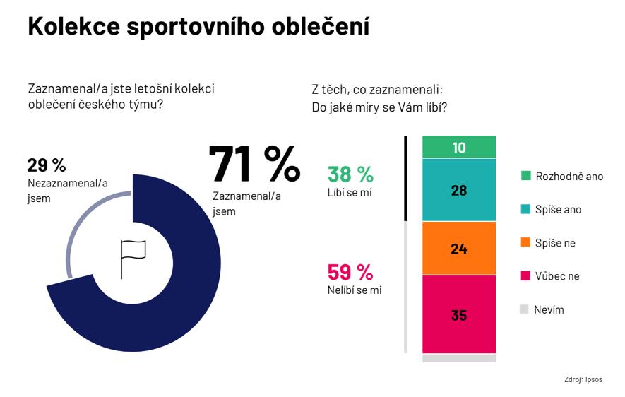 Letošní sportovní kolekci oblečení českého týmu zaznamenalo 71 % české populace. Častěji se jednalo o muže, starší generaci a také lidi s vyšším vzděláním. 37 % z nich uvedlo, že se jim kolekce líbí, více než polovině (59 %) se nelíbí.