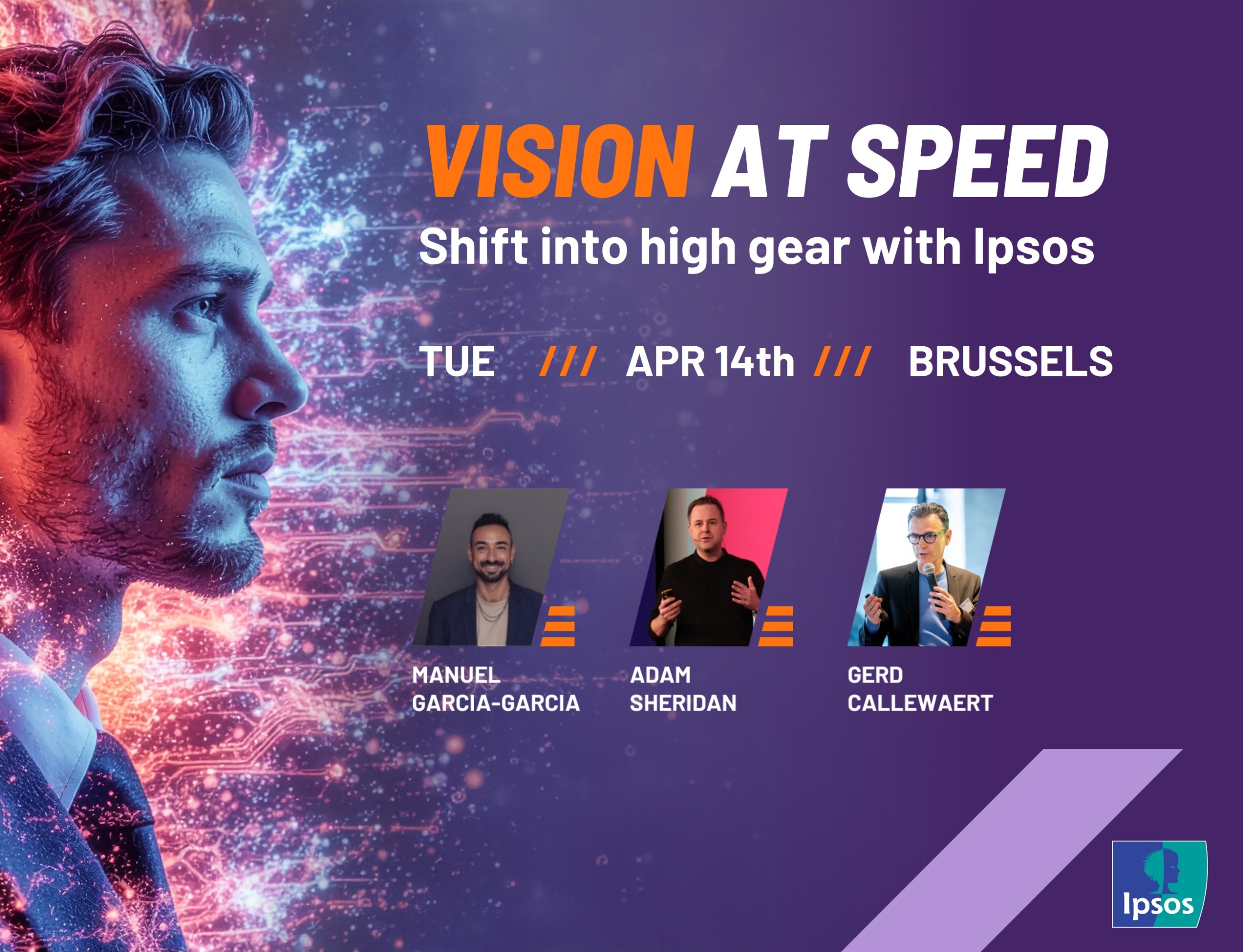 The reality of market and consumer intelligence is transforming at a fast pace, with AI helping and accelerating workflows. But speed is only an advantage when you have a clear line of sight. During our yearly live Ipsos event, we’ll equip you with the tools to make confident moves. Manuel Garcia-Garcia, global expert in AI-driven insights, will dive into how human psychology translates into practical implications for market and consumer intelligence in the AI-era. Adam Sheridan, global Head of Products and Innovation at Ipsos’ Creative Excellence, will inspire you with MISFITS Stories, on how to get to more creative and effective advertising.