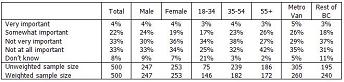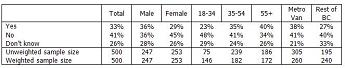 These are the findings of an Ipsos Reid poll of 500 adult British Columbians conducted online using Ipsos Reid's national online household panel between April 25 and 26, 2013. These data were statistically weighted to ensure the sample's regional and age/sex composition reflects that of the actual BC population according to 2011 Census data. The precision of Ipsos online polls is measured using a credibility interval. In this case, the poll is accurate to within +/- 5.0 percentage points had all BC adults been surveyed.
