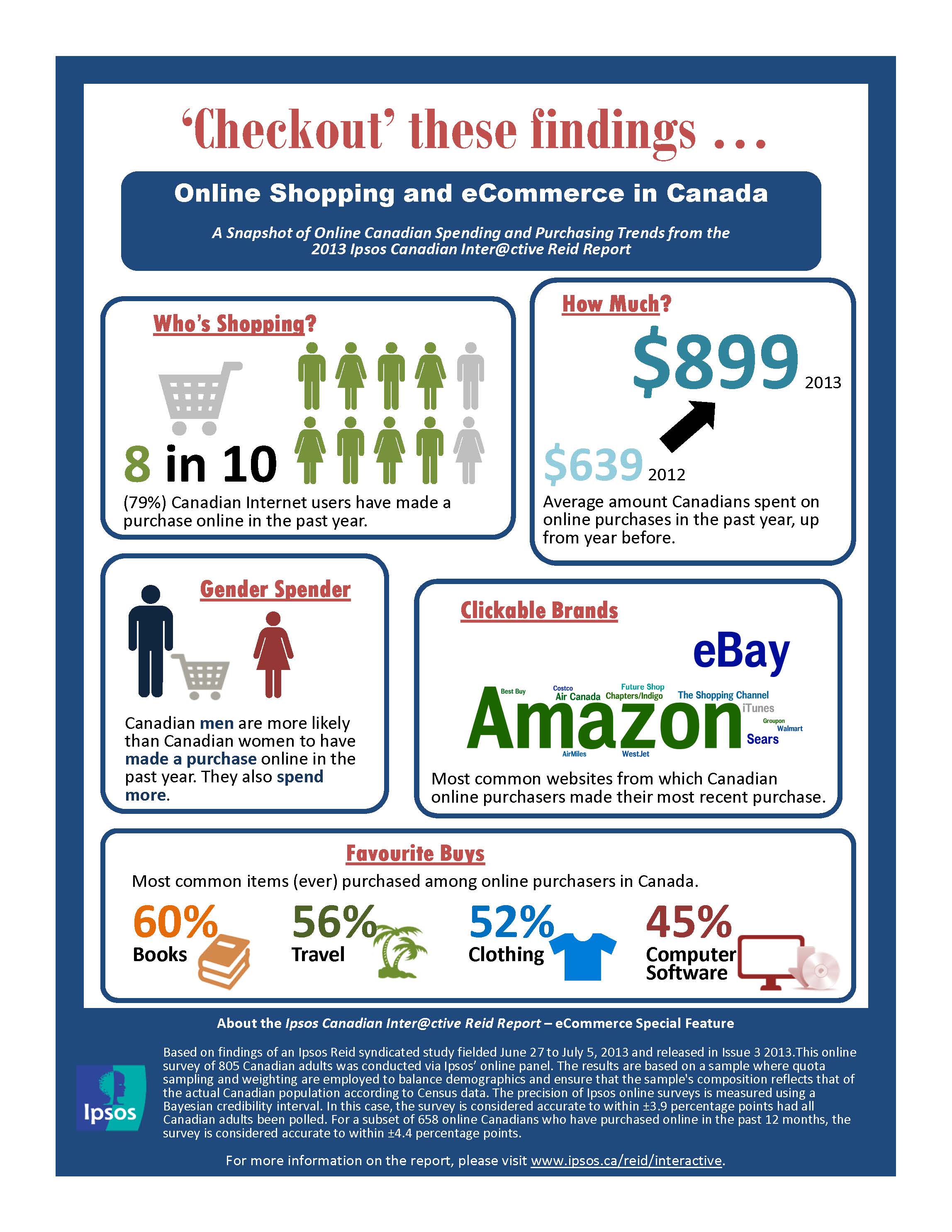 This release is based on the findings of an Ipsos Reid syndicated study, The Ipsos Canadian Inter@ctive Reid Report, fielded June 27 to July 5, 2013 and released in 2013- Issue 3. This online survey of 805 Canadian adults was conducted via Ipsos' online panel. The results are based on a sample where quota sampling and weighting are employed to balance demographics and ensure that the sample's composition reflects that of the actual Canadian population according to Census data. The precision of Ipsos online surveys is measured using a Bayesian credibility interval. In this case, the survey is considered accurate to within +/- 3.9 percentage points had all Canadian adults been polled. For a subset of 658 online Canadians who have purchased online in the past 12 months, the survey is considered accurate to within +/- 4.4 percentage points.