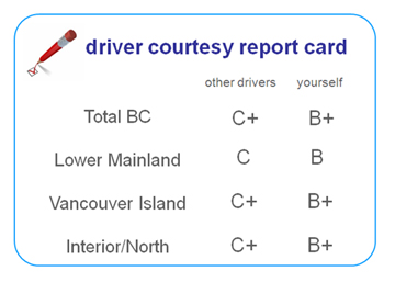 - Ratings of other drivers in the community are slightly worse in the Lower Mainland (average grade of C) than in the Interior North (average grade of C+) or Vancouver Island (average grade of C+).