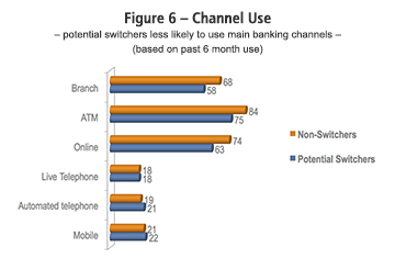 These channel usage differences and their less complex banking relationship needs demonstrate the importance of working to lure `at risk' customers very early in their banking relationship, before their behaviours become entrenched and they feel less inclined to make major changes. Attracting these potential switchers thus represents a significant upside in terms of securing what business they currently have and growing them into more complex profitable relationships over time.