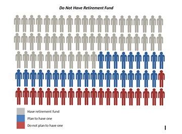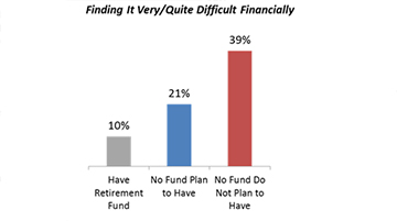 Being young also has a role; 18 to 34 year olds are least likely to have a retirement fund. Young adults are however thinking about it, perhaps making plans for when they have acquired more financial assets - half of those under 34 years old plan to eventually have one. In comparison, older adults with no funds are less likely to have plans for a retirement fund; they are the truly excluded group.
