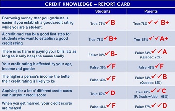 Students are less knowledgeable about credit rating than their parents, although some parents are not knowledgeable enough to pass on information, according to the results of the Ipsos/RBC credit knowledge report card.
