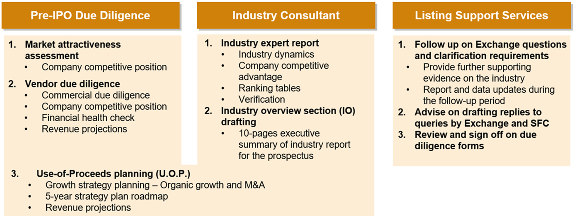 - Act as a leading Industry Expert and Industry Consultant for over 200 high-profile HK listings and over 400 related transactions.