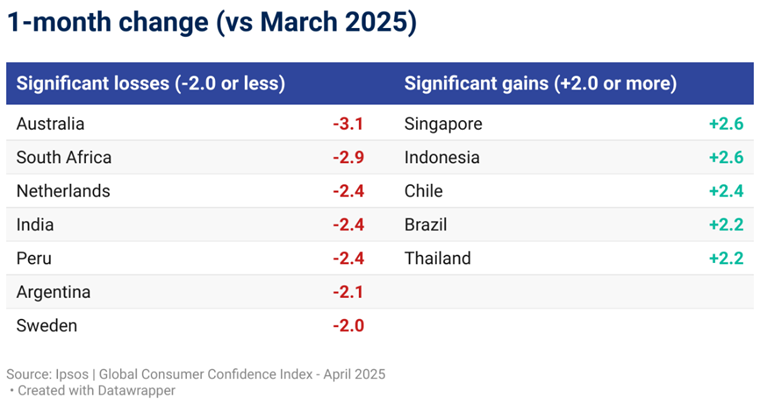 April 2025: Global consumer confidence down slightly for the second consecutive month