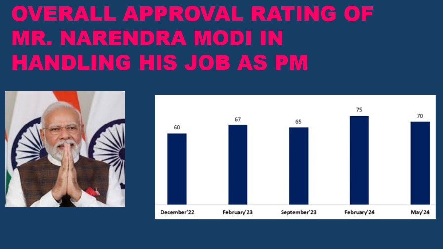 Slight dip in May 2024, yet Mr. Modi gets a high approval rating of 70%, showing citizens rate him high on performance as PM: Ipsos IndiaBus PM’s Approval Rating