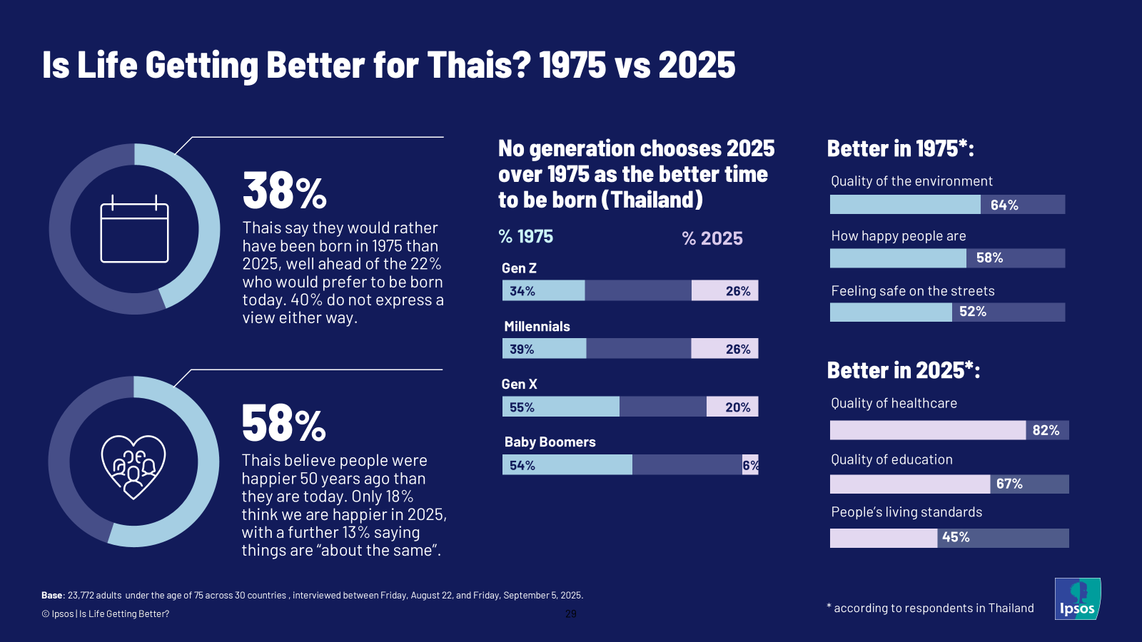A striking finding highlights a deep social nostalgia. A majority of respondents reported a "bad year" for themselves and their families (57%) and for Thailand (74% up 9% YoY) in 2025. This sentiment is amplified by a preference for the past: