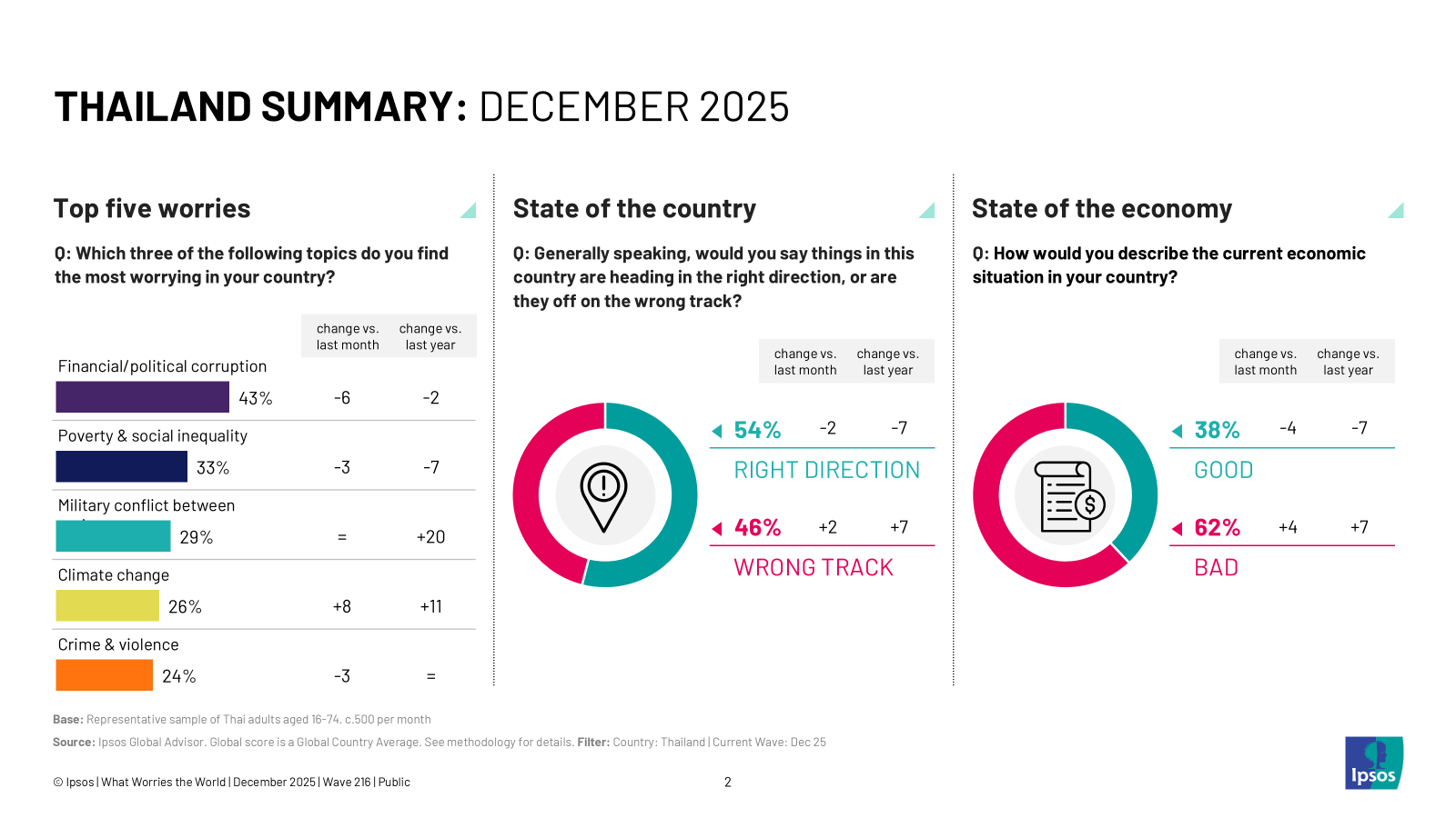 As the year draws to a close, confidence in the country’s trajectory has seen a subtle decline. The proportion of Thais who believe the country is moving in the "Right Direction" has dropped to 54%, a decline of -2 percentage points from November and -7 from the December last year.