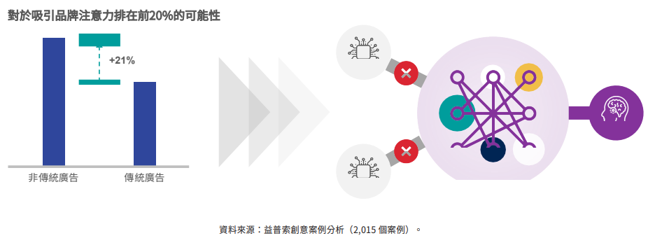 雖然 AI 科技能夠提升品牌的營運效率,但它仍然缺少人類的同理心、深層理解和創造力。舉例來說, 品牌能夠運用 AI 工具進行創意發想和評估成效的工作,但 AI 對於全新的創意思維及對文化的深入洞察仍有一段距離。因此,行銷人員可以利用 AI 優化工作流程,從而把更多時間和精力投入到激發突破性廣告活動的創意工作中。