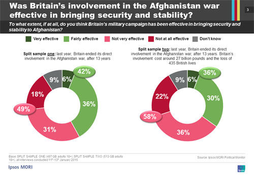 Half of Britons sampled were informed of the cost of the Afghanistan War to Britain, at £27 billion and 435 British lives, while half were not.