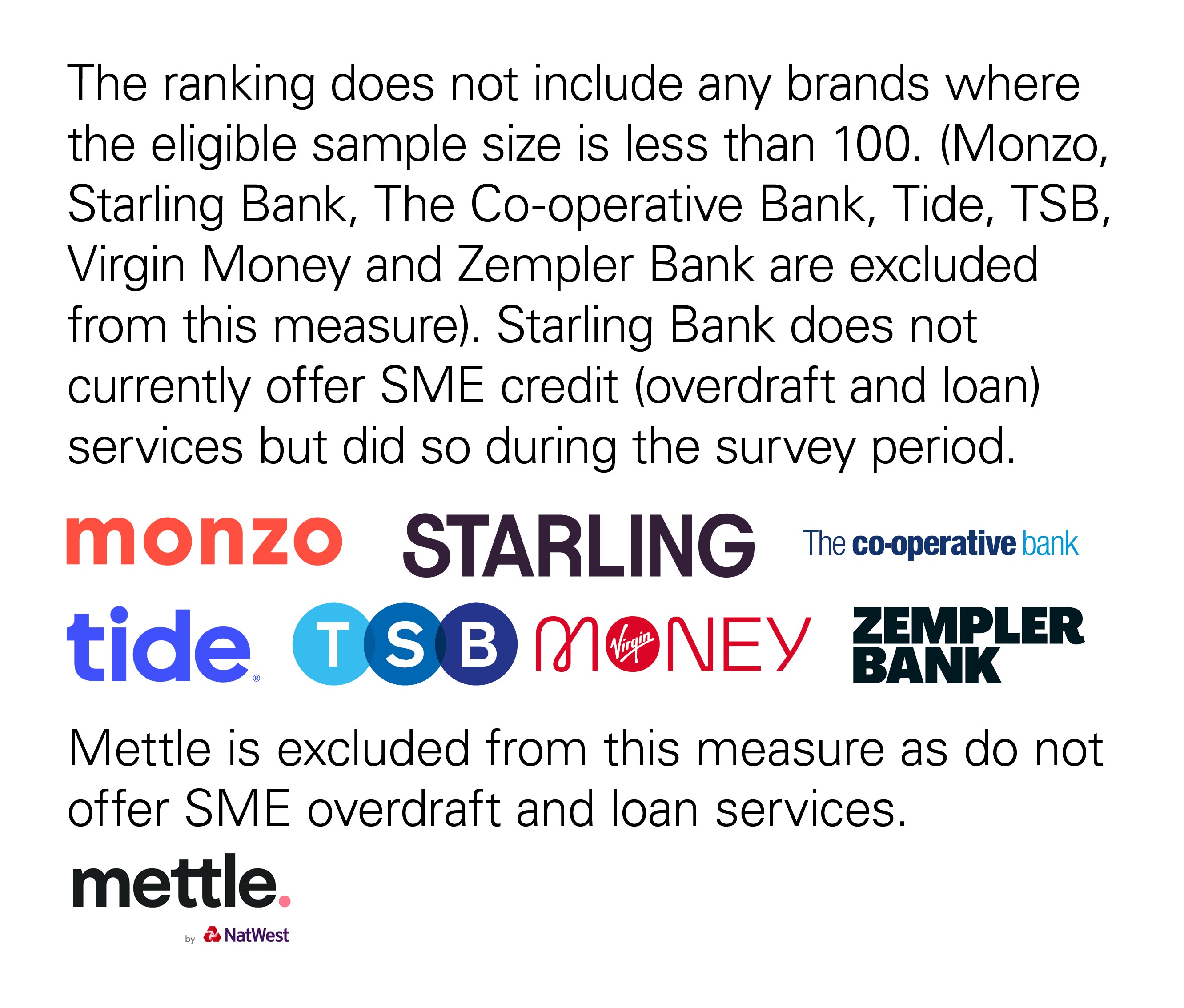 Providers participating in the survey in Great Britain: Bank of Scotland, Barclays, Handelsbanken, HSBC UK, Lloyds Bank, Metro Bank, Mettle, Monzo, NatWest, Royal Bank of Scotland, Santander, Starling Bank, The Cooperative Bank, Tide, TSB, Virgin Money and Zempler Bank.