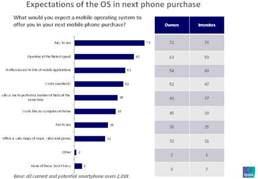 When current and potential smartphone users are prompted with a list of benefits they are looking for from their next OS, ease of use and speed come out top.