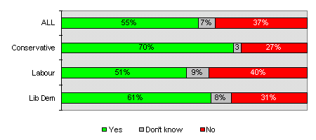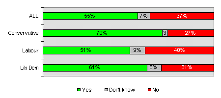 And the same survey, conducted by MORI, shows growing support for the use of Government funds to enable children from low income families to attend independent schools. Nearly two-thirds of those questioned (63% - up from 59% in 1997) now support the idea; 61% of Labour supporters are in favour. Only one in five (21%) opposed it.