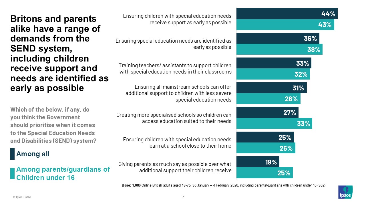 New data from Ipsos in the UK reveals that, as the government prepares reforms to the Special Educational Needs and Disabilities (SEND) system, early support, identification, and training for educators top the public’s priority list.