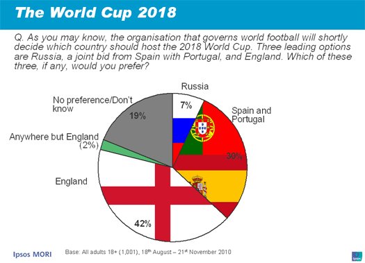 On the eve of FIFA's decision about who will host the 2018 World Cup, more Scots have chosen England as their favoured host, in front of the other two main contenders according to a new survey by Ipsos Scotland.