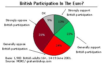At the time of the last election only about one in ten of the electorate said they 'strongly' favoured Britain's entry (a value), against about a third who said they 'strongly' were opposed (again, a value). Nearly half the country, some 46%, who split virtually half and half, said they either 'generally favour Britain's joining the single European currency but could be persuaded to vote against it if I thought it was in Britain's economic interests to do so,' or they 'generally oppose Britain's joining the single European currency but could be persuaded to vote for it if I thought it was in Britain's economic interests to do so.' The fact is that it would be much easier for the no campaign to convince 18% of the public who admit they can be persuaded one way or the other, to add up to a 51% majority for the 'no' vote, than it would be to persuade 38% of the 46%, more than eight in ten, to join with the 13% to win it, and then, only by a whisker.
