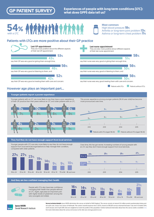 Enhancing the quality of life for people with long term conditions remains a key priority for the NHS, and primary care has been identified as crucial to the support the NHS can offer to these people. The GP Patient Survey (GPPS) helps us understand a little bit more about the experiences of these patients in relation to general practice.