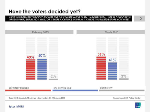 Ipsos interviewed a representative sample of 1,025 adults aged 18+ across Great Britain. Interviews were conducted by telephone 8-11 March 2015. Data are weighted to match the profile of the population.