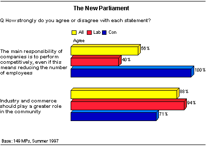 MORI interviewed a representative sample of 173 MPs face-to-face between 19 June and 1 September 1997 (response rate=56%). Results have been weighted to reflect the composition of the House.
