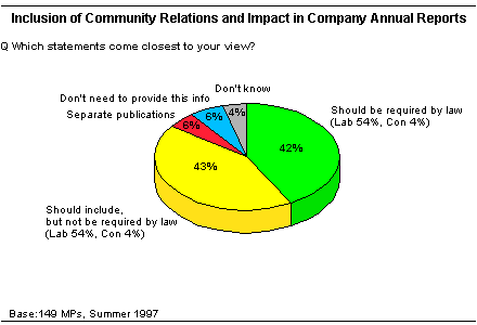 New findings reveal a substantial shift in MPs' attitudes towards companies' social responsibilities over the last year. Some 88% of all MPs in the new look Parliament, and an overwhelming majority of Government ministers, now believe that industry should play a bigger role in the community.