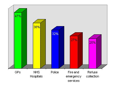 - the Post Office, local electricity companies and GPs top the satisfaction ratings, while road and pavement maintenance is the worst regarded public service