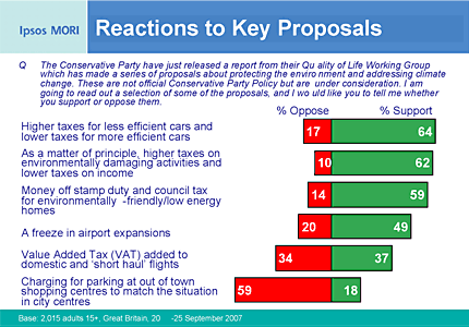 "The results should give David Cameron renewed confidence in the recent proposals of his Quality of Life Working Group. Not everything is palatable to the public, and out of town parking charges in particular face widespread opposition. However, they back, in principle, Polluter Pays and the idea that the environmental agenda is more than just pain free, easy wins. But of course the detail behind the initiatives, and the way Polluter Pays is implemented, will be key".