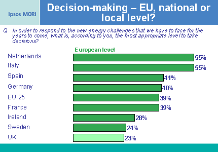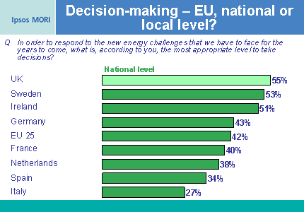 Our report Tipping Point or Turning Point, Social Marketing & Climate Change finds a complex pattern. First, there is no lack of support for government intervention in principle. A strong majority (66%) believe that the UK can make a real difference in stopping climate change, and the British public, more so than their European counterparts, strongly support action at the national level in preference to supra national organisations like the EU.
