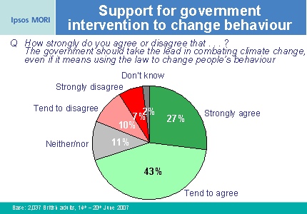 All of this equates to a clear and strong statement of intent among the public: 70% agree the Government should take the lead in combating climate change, even if it means using the law to change people's behaviour.
