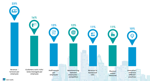 “We look at our number of sales people; we look at the amount of revenue generated per head” "In retail it would be sales per member of shop staff” “For us it is fees per consultant on a four week basis, fees per employee”