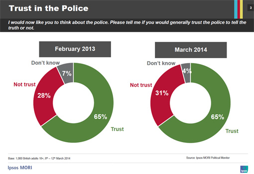 New research from Ipsos shows that two in three (65%) Britons say they would generally trust the police to tell the truth, while 31% do not trust them to tell the truth.