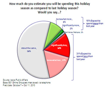 The study also explored if shoppers expect to increase or decrease how much they spend this holiday season compared to last year. Results show that most online shoppers (58%) believe they will spend about the same this upcoming holiday season; while one in ten (10%) say they will spend more this year. In contrast, close to one in three (31%) believe they will spend less than last year - including 14% who say they will spend significantly less.