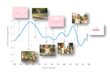 This biometric trace shows consumers emotional response to the Evian Babies viral video: