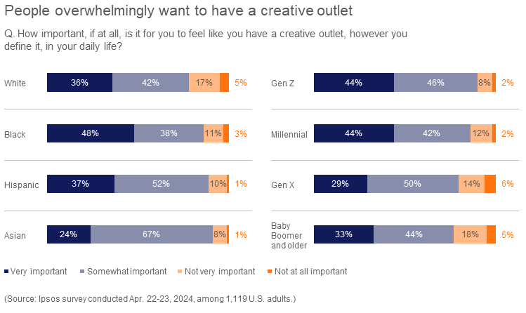 For brands, the opportunities lie in helping people be creative, which is a nearly universal human value. There are also challenges in keeping brand voices authentic as marketing messages (and disinformation) proliferate.