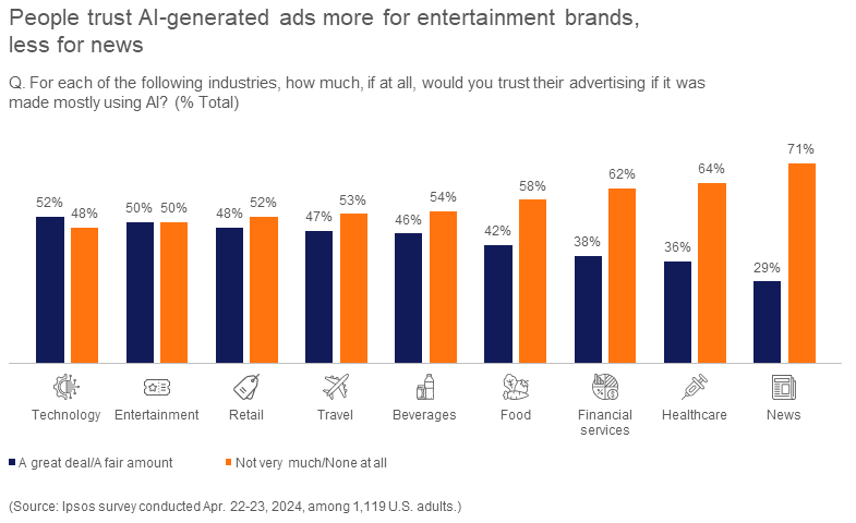 MacArthur: We asked consumers where they would trust advertising if it was made using AI, and the greatest trust was for technology and the least for news. Does that surprise you?