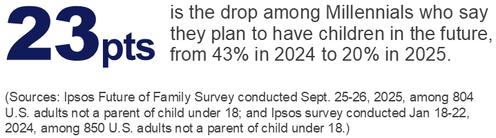 We mentioned that reversal of demographic trends is plausible. Unlikely, but plausible. The Trump administration has been clear in its desire for Americans to have more babies. It’s a manifestation of another Ipsos Global Trends, Retreat to Old Systems, which is a mix of warm, fuzzy nostalgia and a gender dynamic countertrend rooted in the idea that the system is broken and things were better at some earlier point in time.
