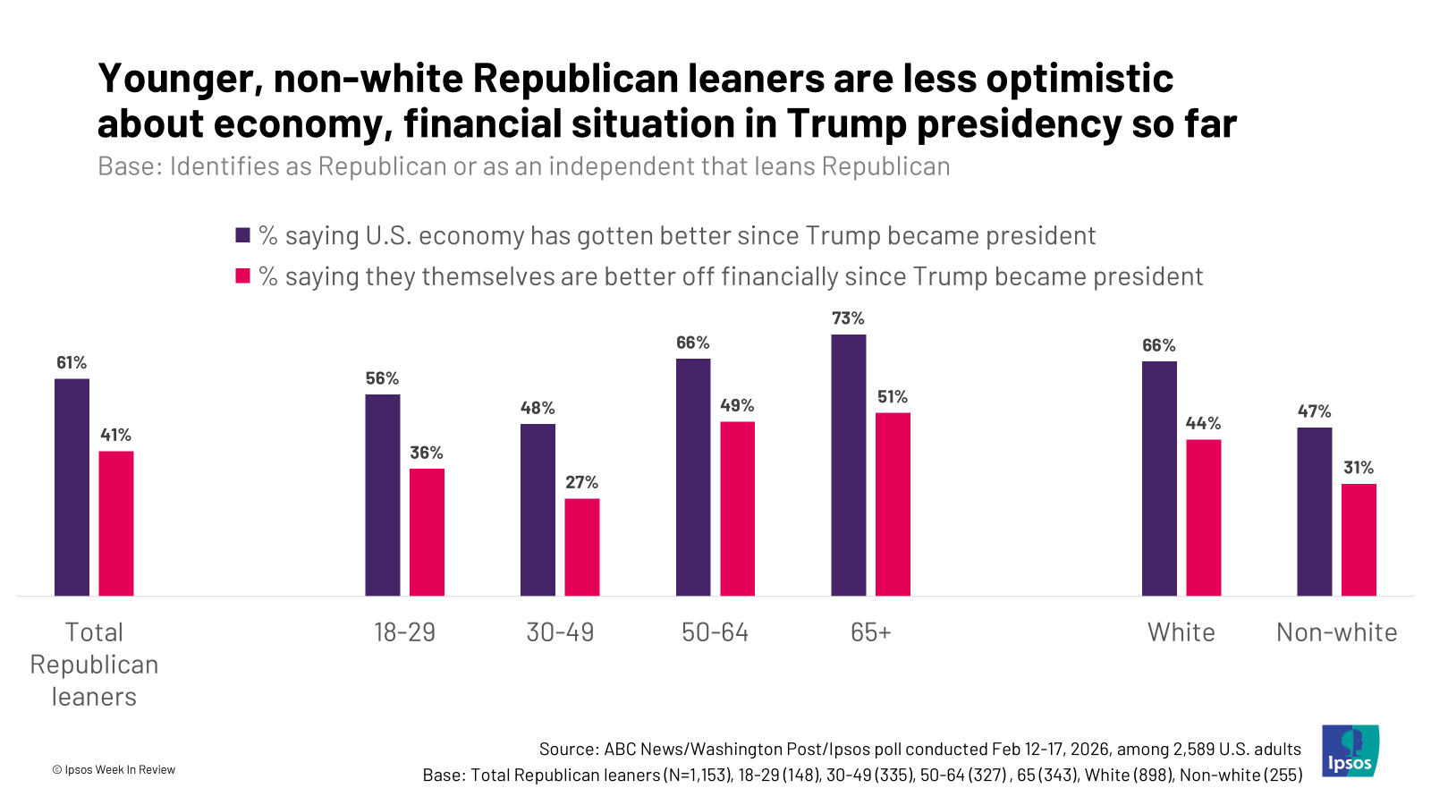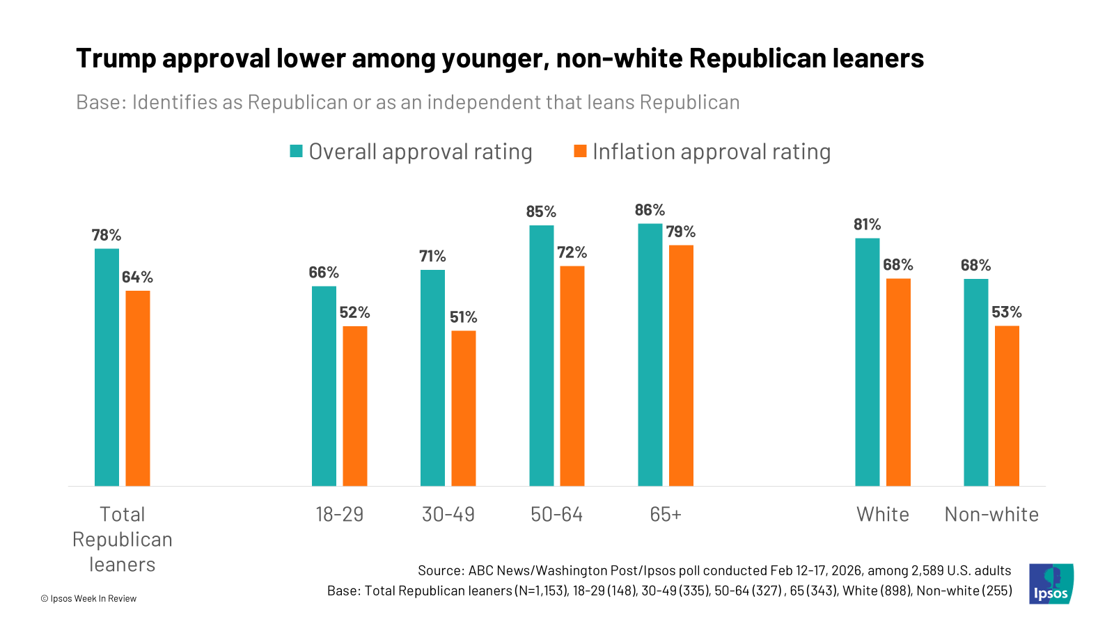 But under the surface, there are some warning signs brewing. Younger and non-white portions of the Republican Party are less satisfied with the Trump administration, with their biggest grievances being with the economy and inflation.