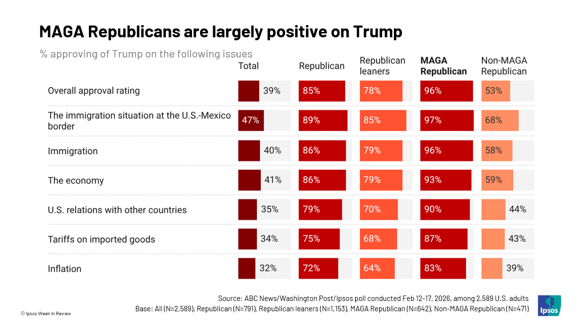 The Republican Party remains solidly behind Donald Trump. MAGA loyalists stand with the president across nearly every major issue, and his grip on the party's future looks as firm as ever.