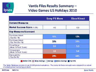 In a recent research wave of Vantis*Express - an on-demand research service that tests new products and services - Ipsos Vantis tested Xbox Kinect (using two different communication styles) and the Sony PlayStation Move.
