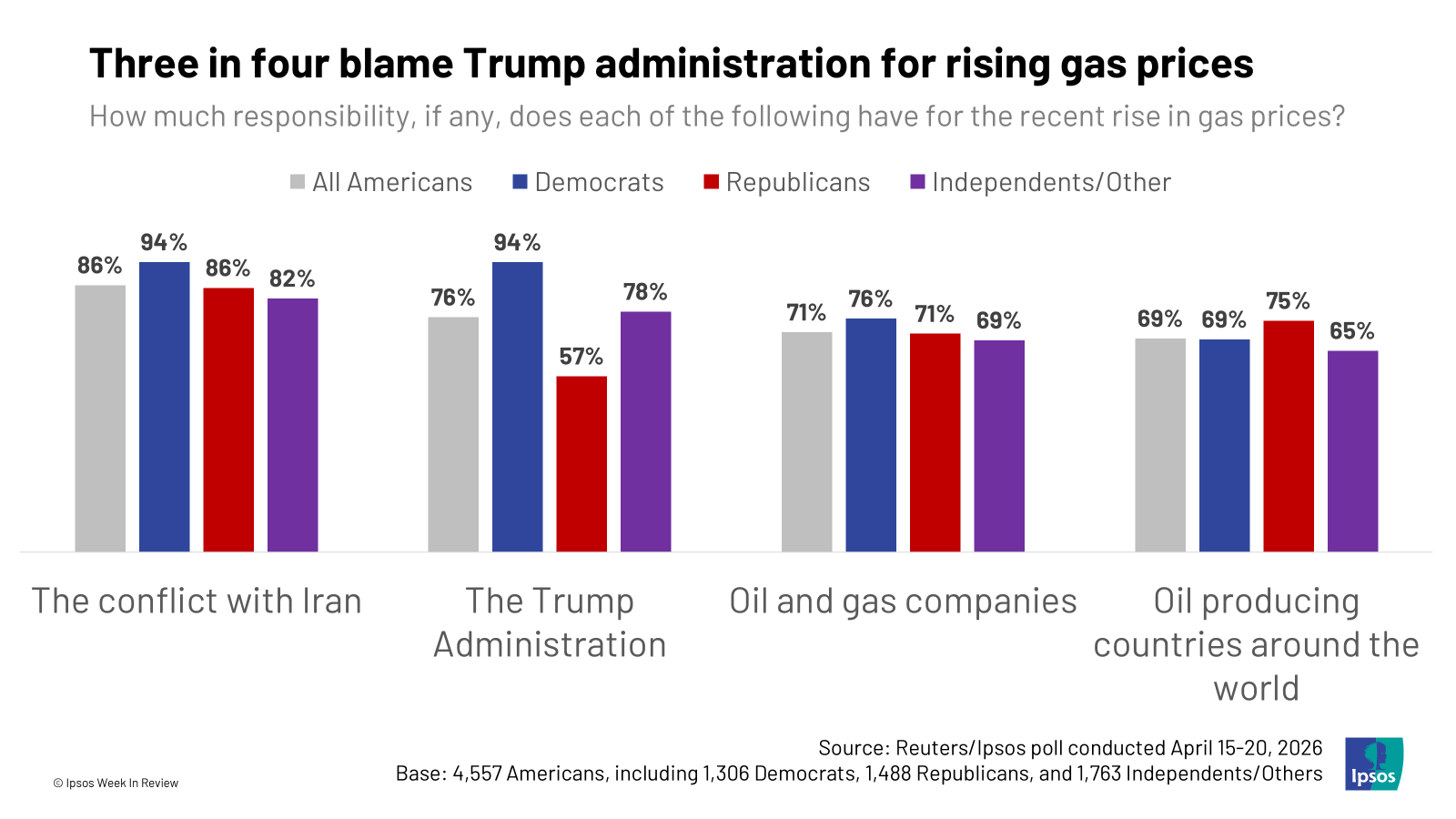 4. Gas prices. As the Iran war drives gas prices higher, Americans are attributing the pain to the conflict — and to the Trump administration. That includes a majority of Republicans.