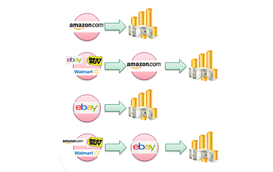 18% only visit Amazon and make their final purchase there. 22% make their final purchase at Amazon after visiting other online retailers. 9% only visit eBay and make their final purchase there. 13% make their final purchase at eBay after visiting other online retailers.