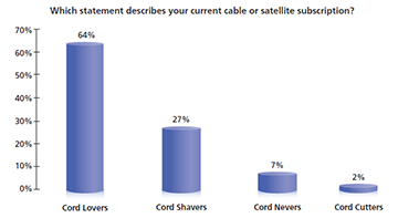 The TV industry should not panic yet. Our research shows that the vast majority of individuals watching prime-time TV are currently subscribers to a cable or satellite service, with the vast majority of viewers Cord Lovers.