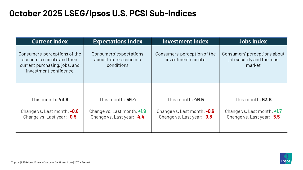 October 2025 LSEG/Ipsos Primary Consumer Sentiment Index