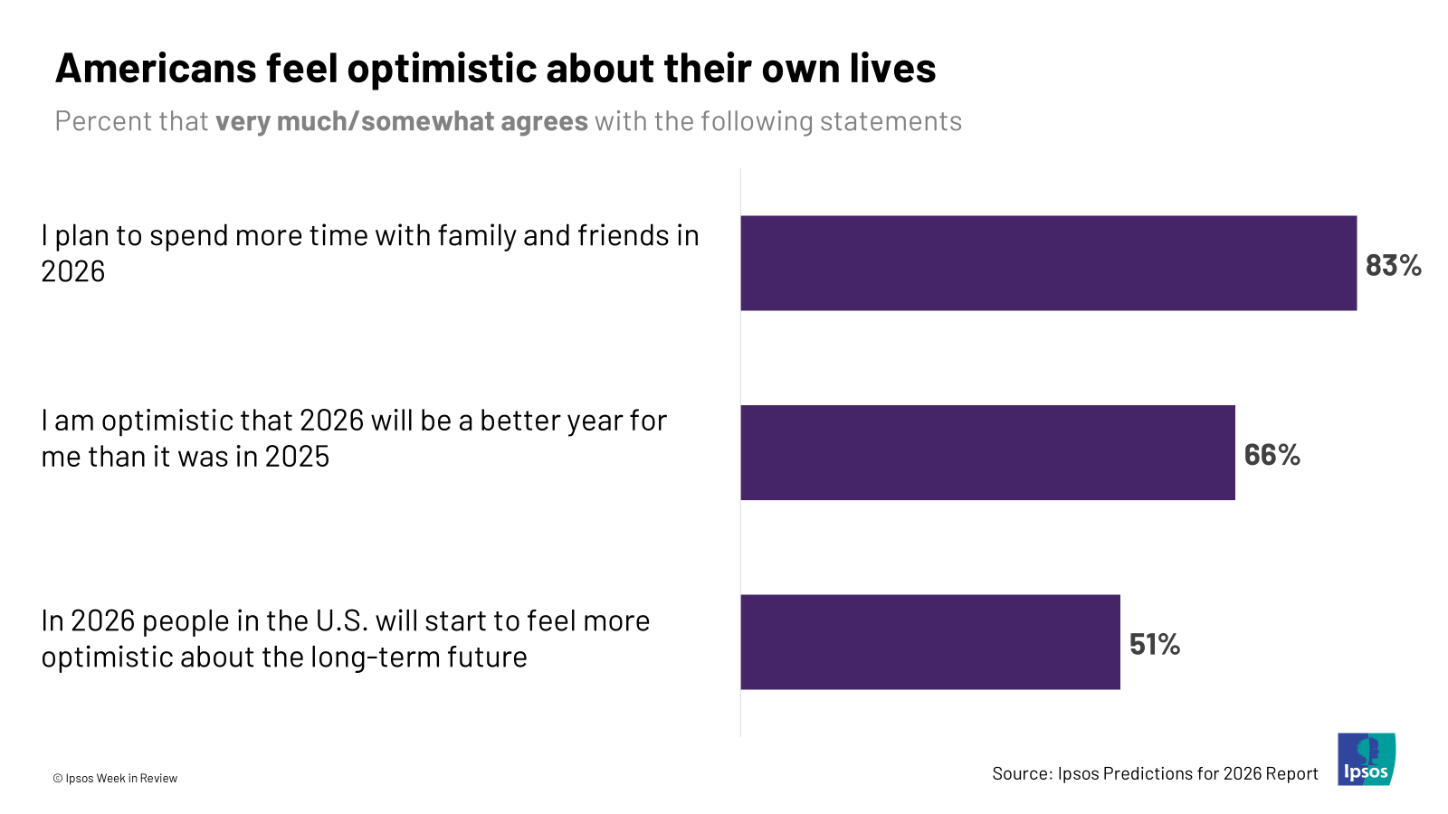 - But at home, things are looking up. Despite the external uncertainty, Americans are optimistic that 2026 will be better than 2025 for them personally. They also plan to spend more time with their family and spend more time focusing on themselves. It might be cold outside, but at home, it’s warm.