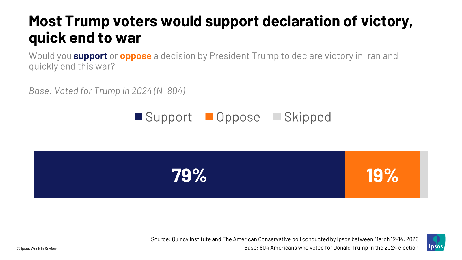 5. Support for an off-ramp. Polling of 2024 Trump voters shows that, even as Trump’s supporters back the war, they would simultaneously support Trump taking a quick off-ramp. Support for the war doesn't mean appetite for prolonged engagement.