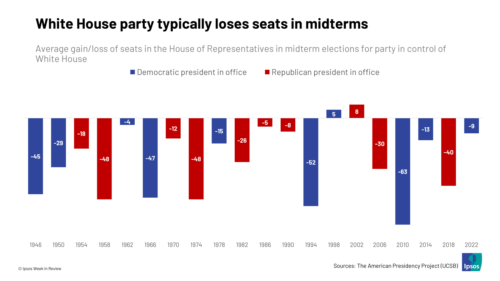 1. History doesn’t favor the White House. In 18 of the last 20 elections, the party in the White House has lost seats in the House, averaging around a loss of about 25 seats. The past is not always prologue, but it often lays the foundation.