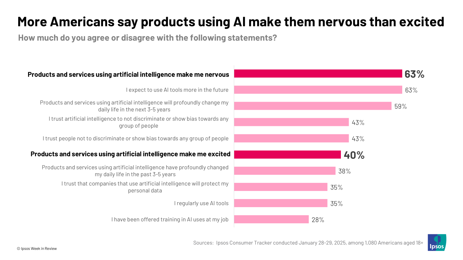 - More anxious than excited. Implementing AI features may please shareholders, but it’s not a surefire way to excite consumers. More Americans report that products and services using AI makes them feel anxious rather than excited.