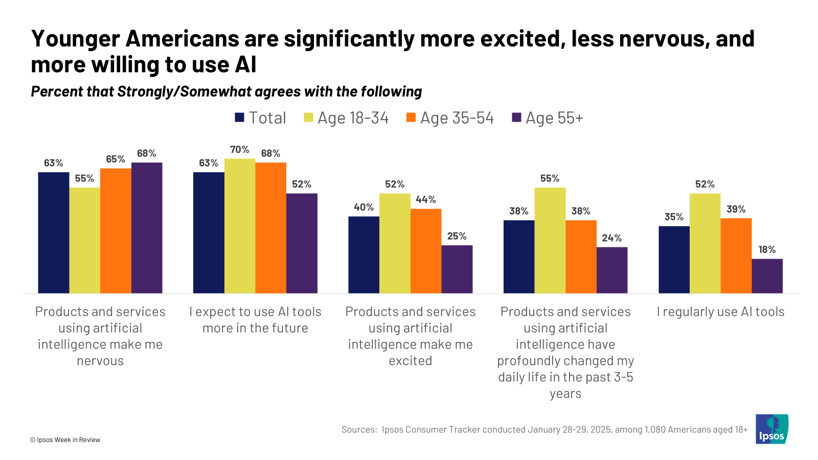 - Generational divide? However, not everyone is feeling the same level of AI anxiety. Younger Americans are more excited, less nervous, and more open to using AI compared to their older counterparts.