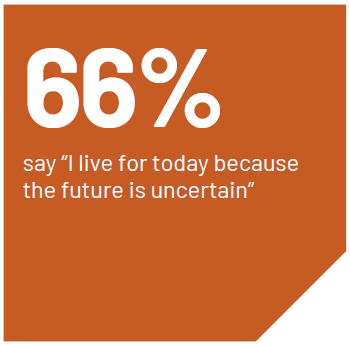 As economic stresses are preventing many from realising their long-term dreams, a sometimes- but-not-always-fatalistic “live for the moment” attitude is rising. Focus on helping people bridge the gap between their aspirations and their realities.